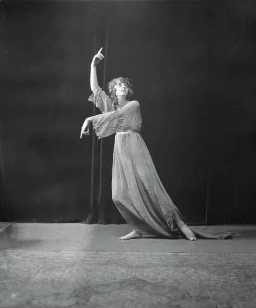 Isadora Duncan, pionnière de la danse libre, a révolutionné son époque en libérant le corps et le mouvement des contraintes académiques. Puisant son inspiration dans la nature, la mythologie et l’élan vital, elle a redonné au geste sa dimension expressive et spirituelle. Son héritage irrigue la Danse de l’Être®, qui prolonge sa quête d’authenticité et son aspiration à une danse reliée aux forces profondes de la nature et du vivant.
